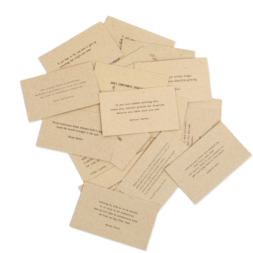 Ready to be inspired by the incredible words of legendary women? Dive into our 50 Gathered Thoughts of "Sheros" on Handmade Paper – the perfect blend of whimsical charm and empowering wisdom that will uplift your soul and spark your imagination!